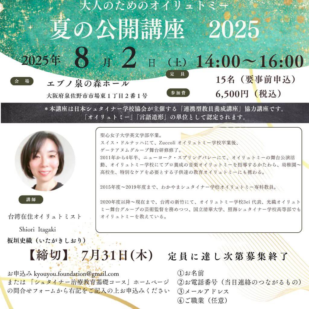 2025年 夏の公開講座のお知らせ(オイリュトミー)